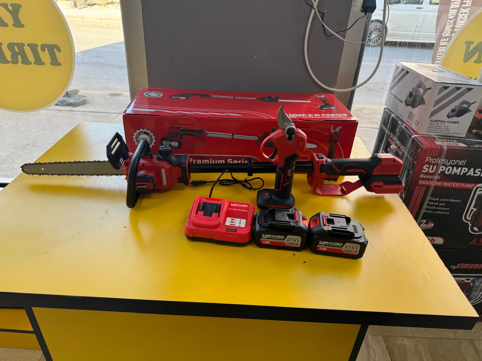2 li budama seti 30 cm palalı otomatik yağlamalı uzatmalı 30 mm makas 2 adet 10 pilli batarya ve şarj aleti
