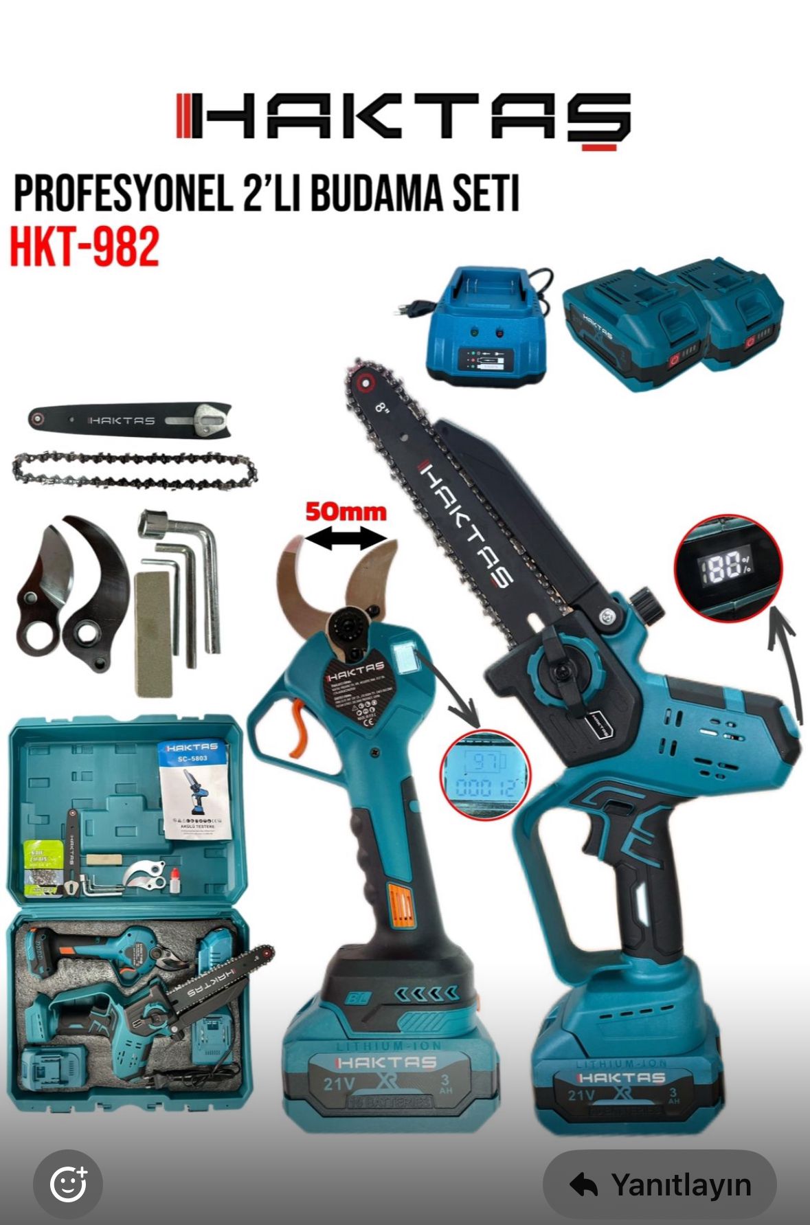 2 li set 50 mm makas 25 cm pala ürünler kömürsüz 2 adet 10 pilli batarya yedek ağızları ve şarj aleti
